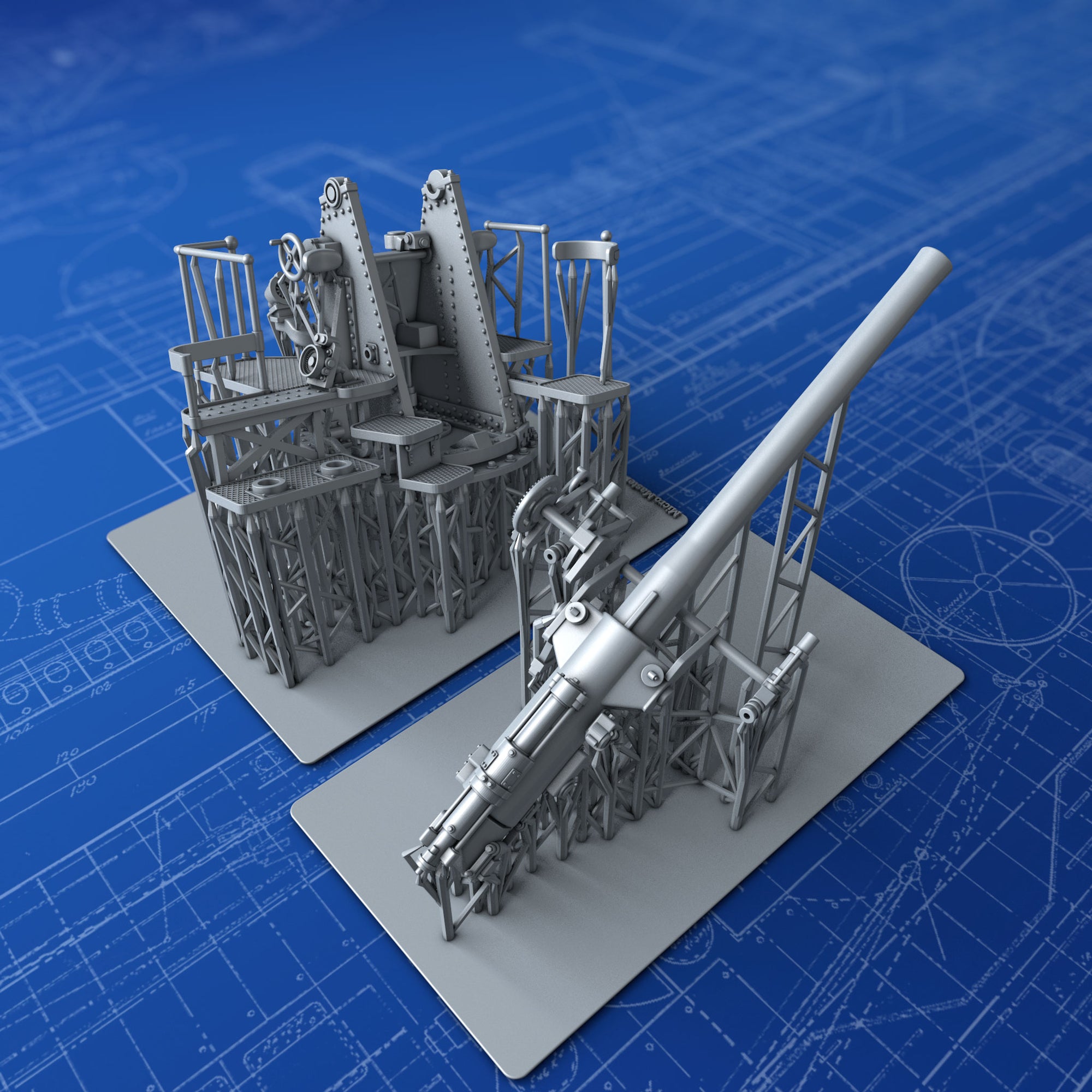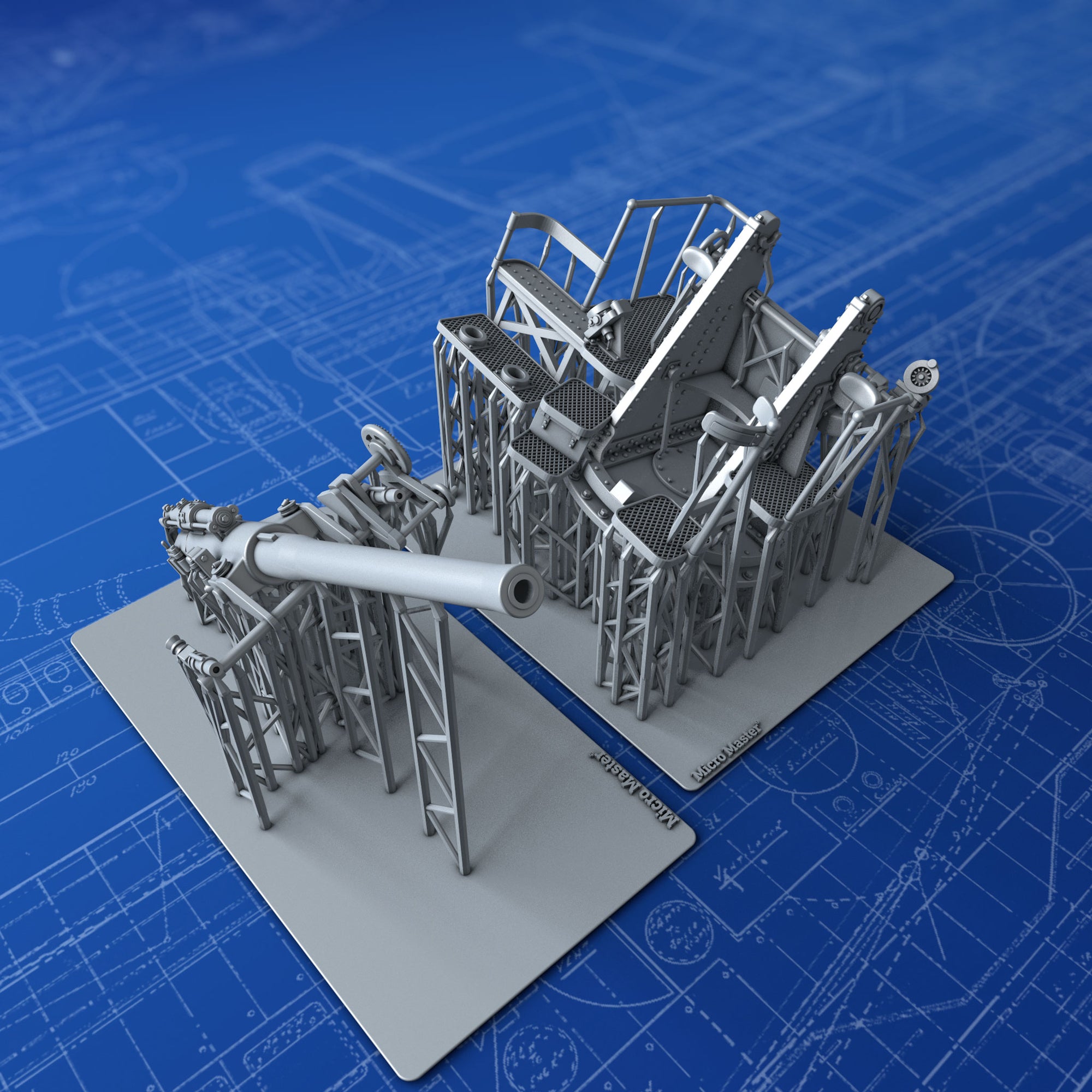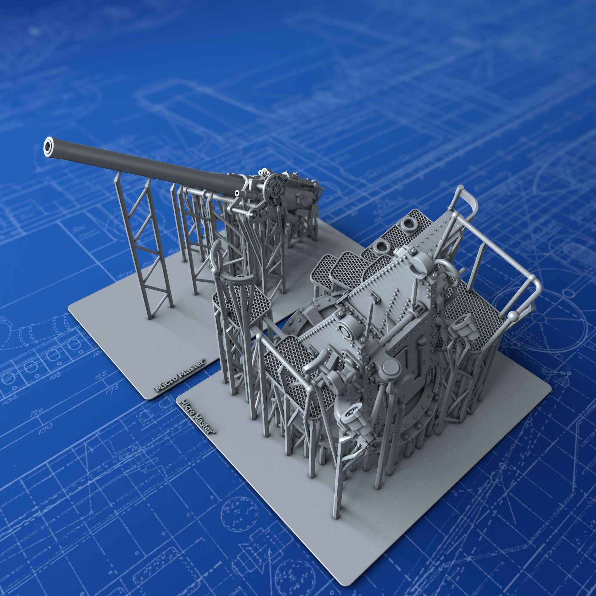1/96 Scale Royal Navy 4"/45 (10.2cm) QF MKV***(N) H/A MKIV as used by the Royal Navy and Commonwealth Navies on County Class Cruisers. These are highly detailed parts modelled using plans and many reference photographs.