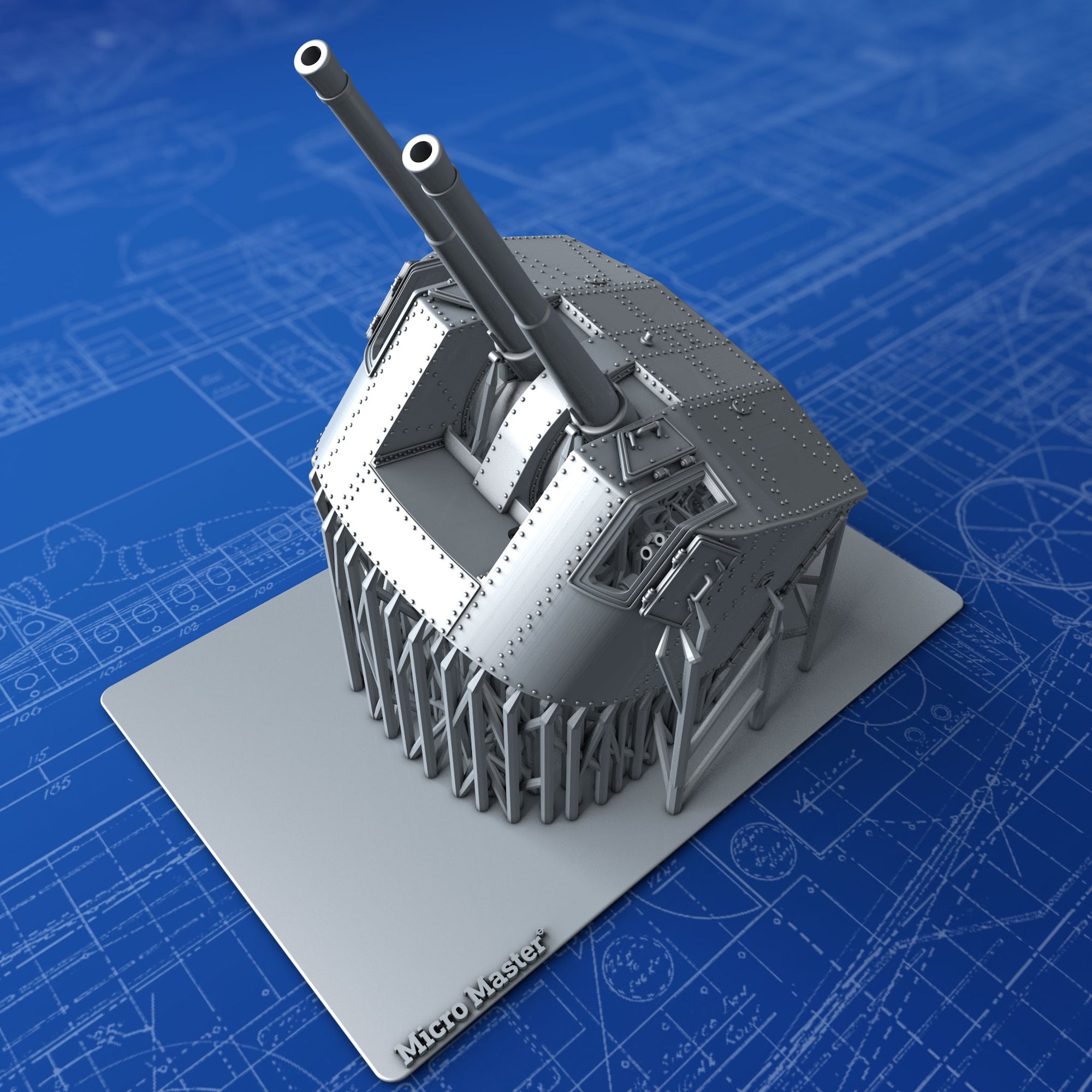 - Details include: Rivets, Hex nuts, open Sighting Ports, Training, Elevation and Sighting apparatus, detailed Breech Loading mechanism, training receivers and accurate footplate