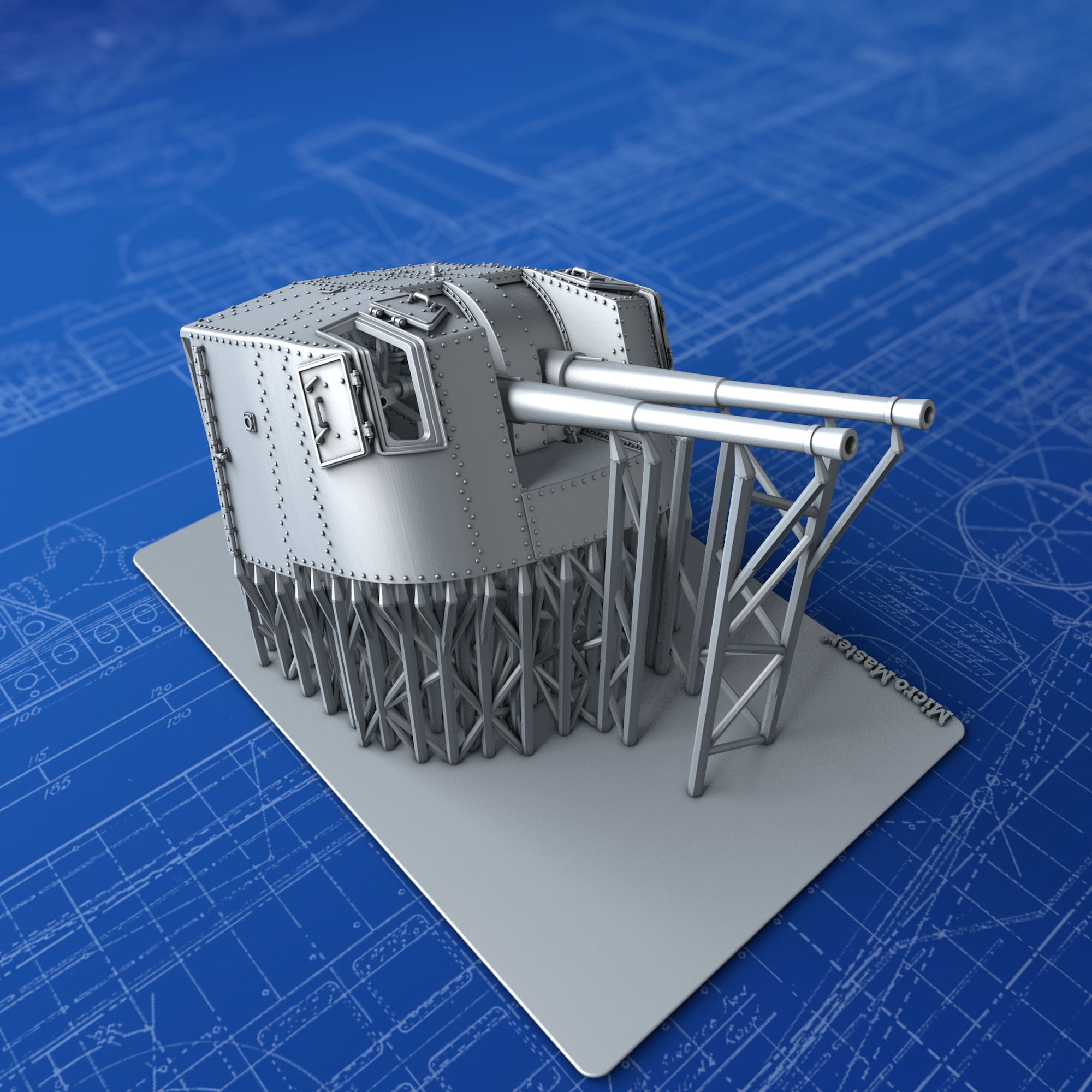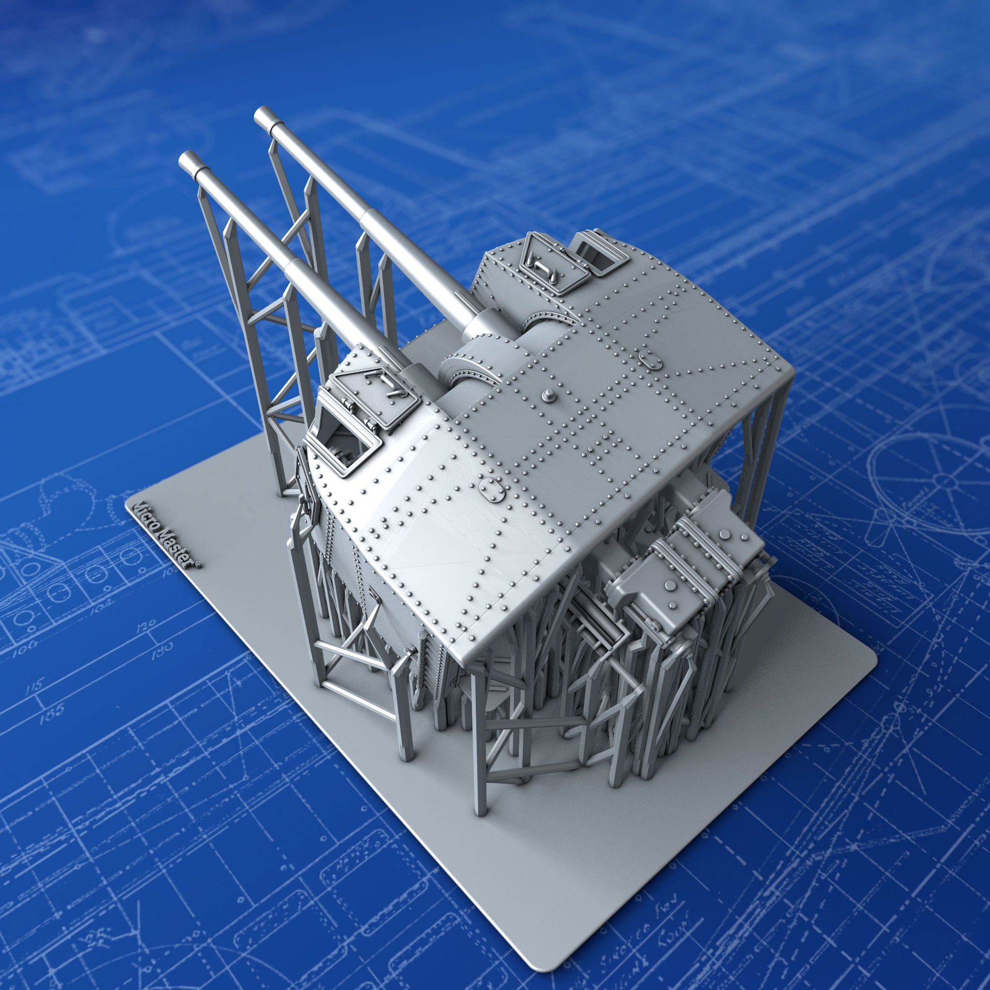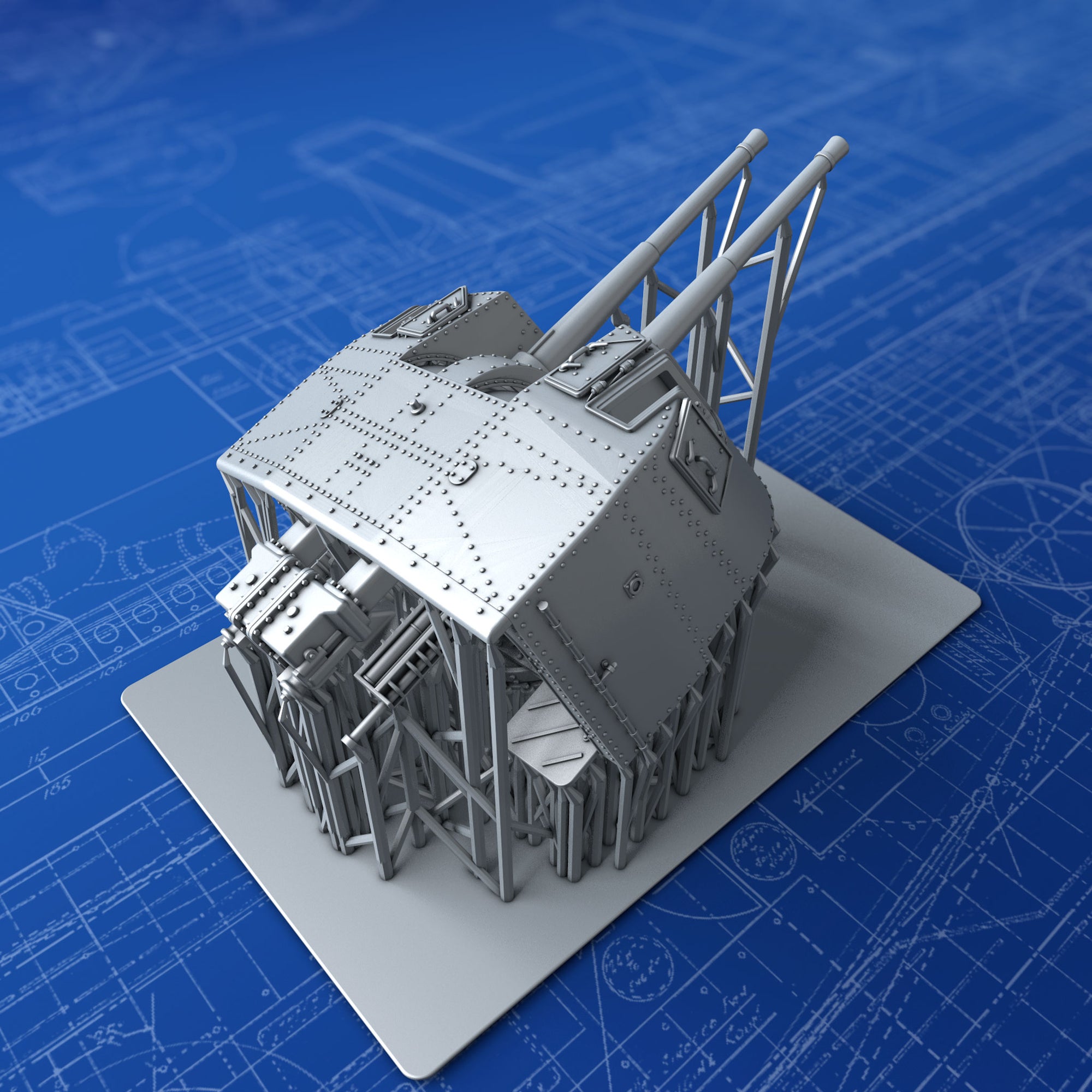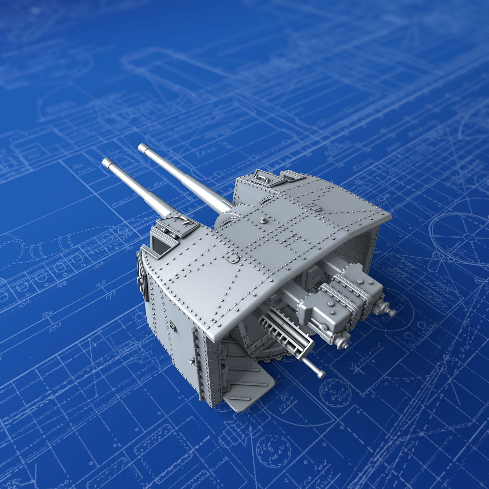 - Details include: Rivets, Hex nuts, open Sighting Ports, Training, Elevation and Sighting apparatus, detailed Breech Loading mechanism, training receivers and accurate footplate