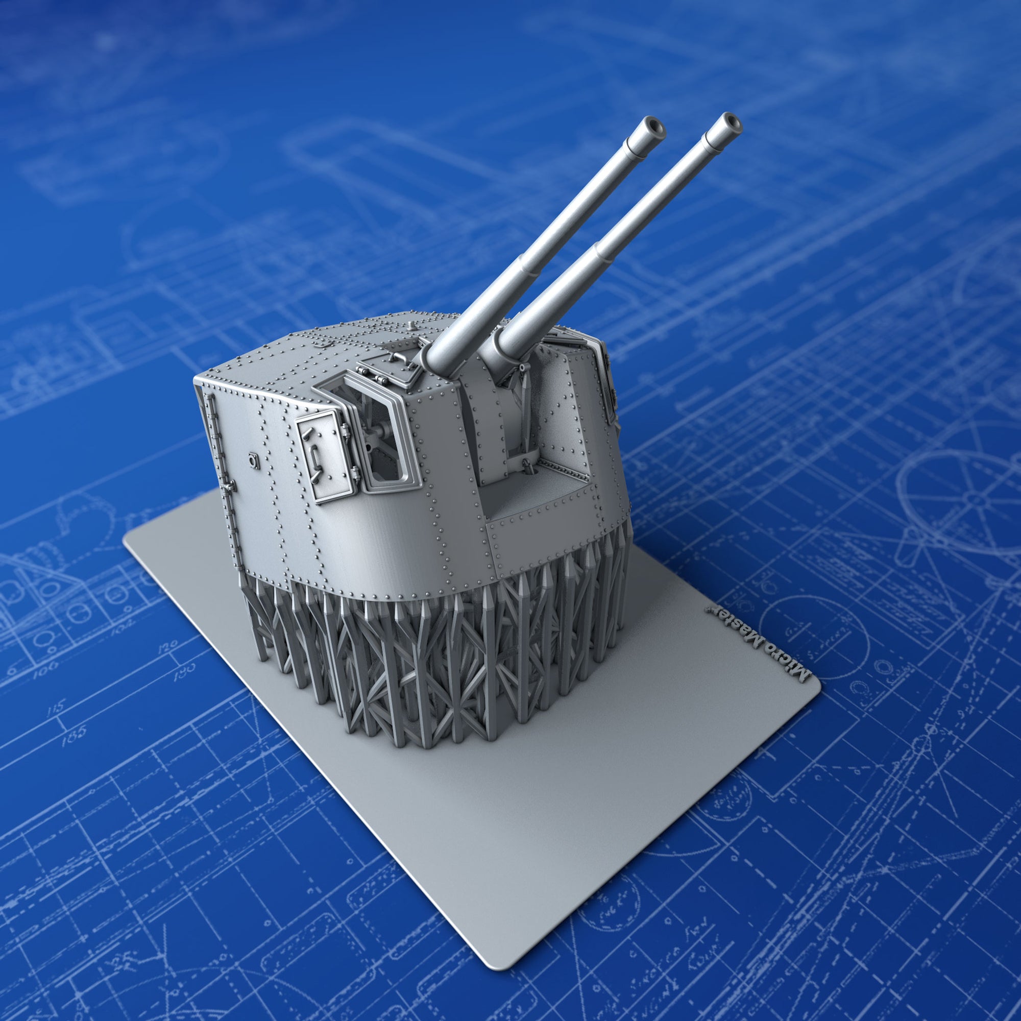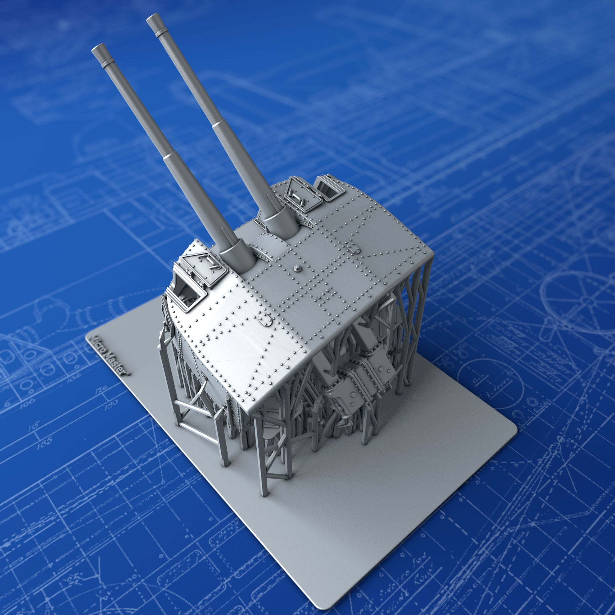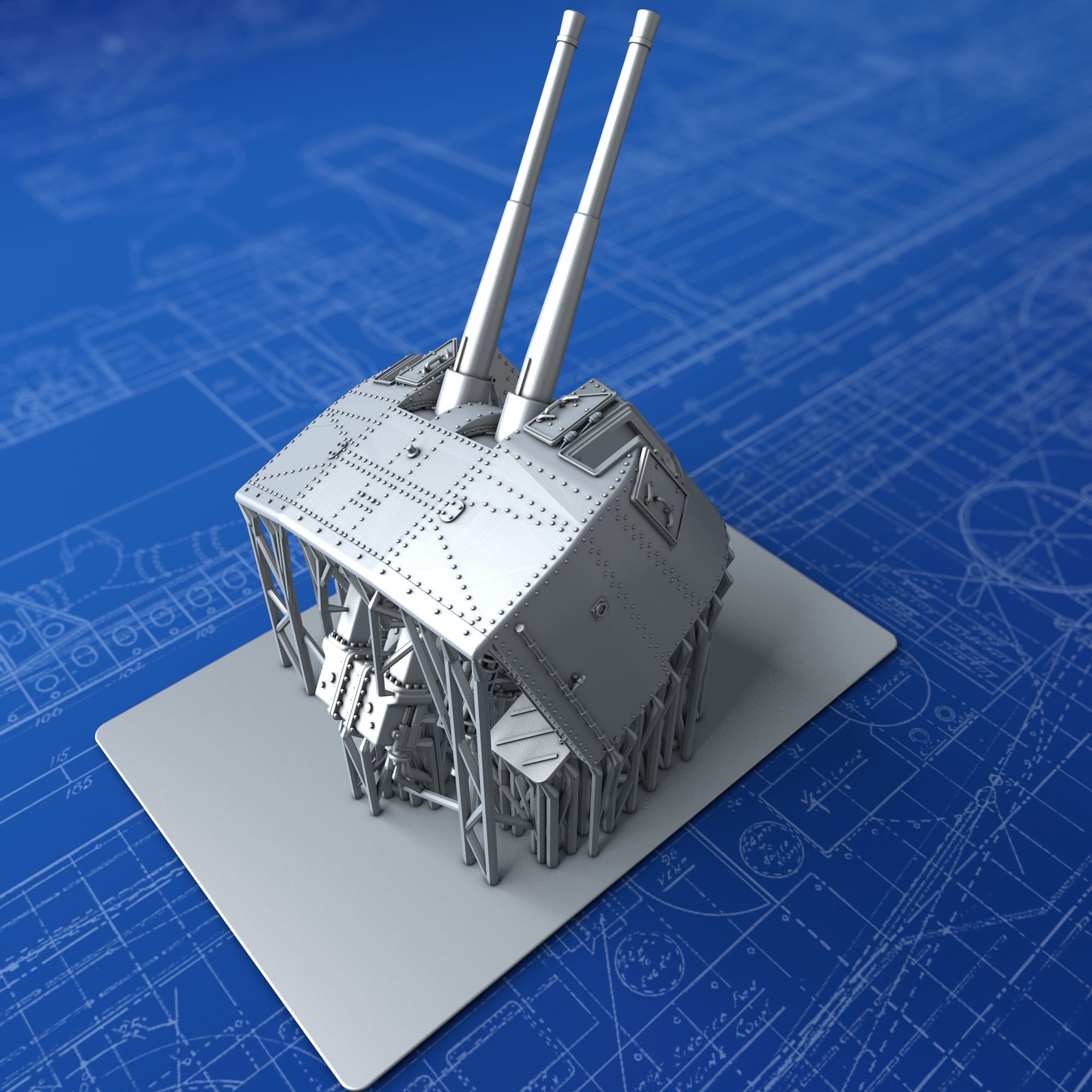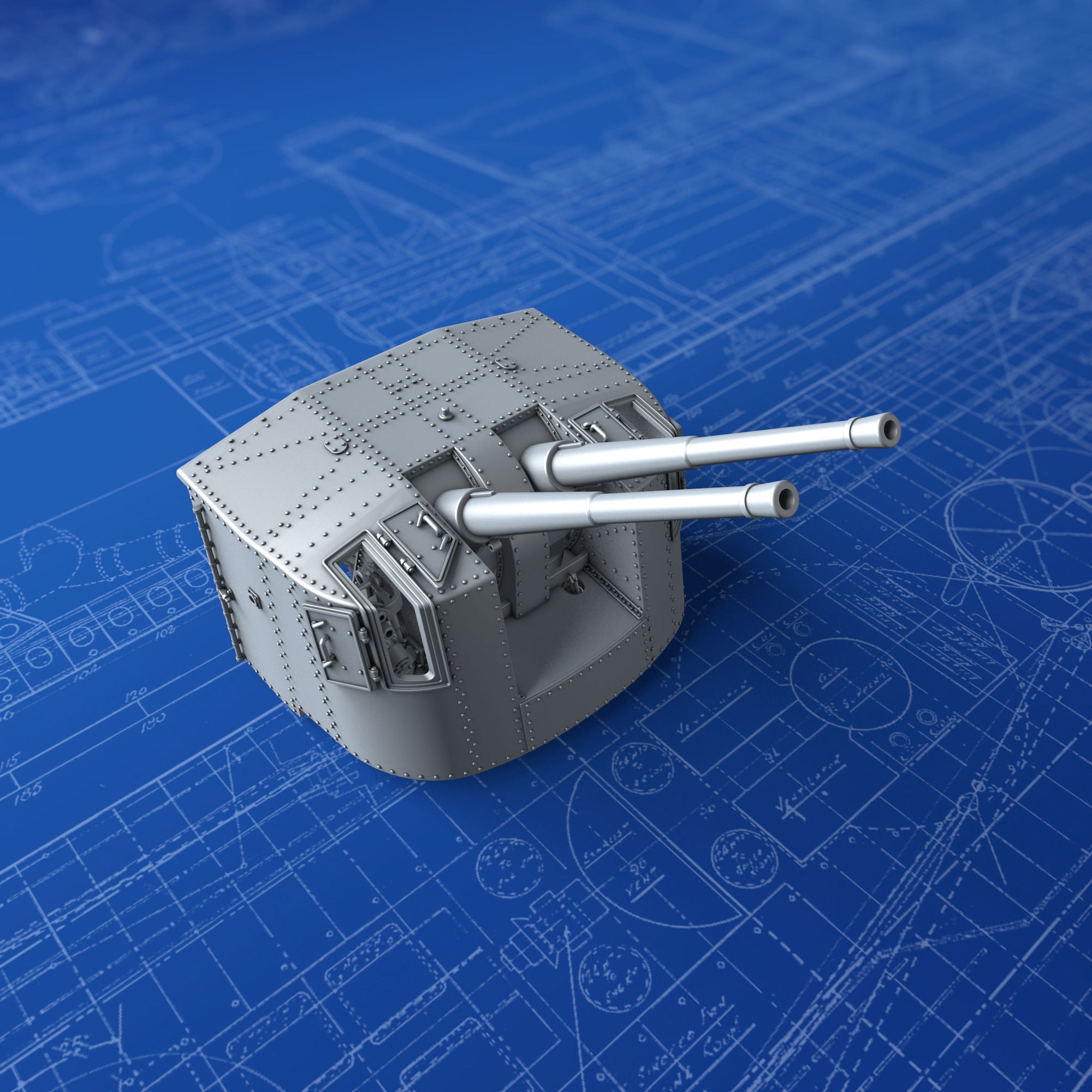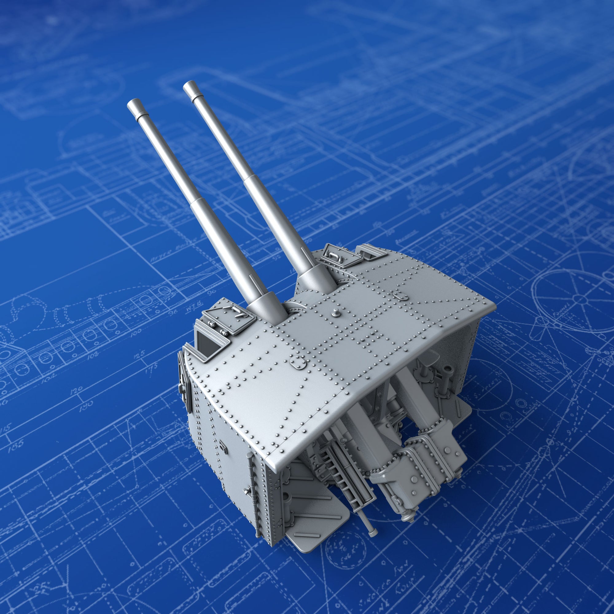- Details include: Rivets, Hex nuts, open Sighting Ports, Training, Elevation and Sighting apparatus, detailed Breech Loading mechanism, training receivers and accurate footplate