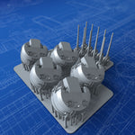 1/350 Scale Royal Navy 5.25"/50 (13.4cm) QF MKI (Early War Version) x5 as used by the Royal Navy and Commonwealth Navies on KGV, Dido and Spartan Classes. Highly detailed parts modelled from plans and many reference photographs. These parts are the early war version of the Mount without extra venting and Cupolas on the Turret Roof, these were added later.