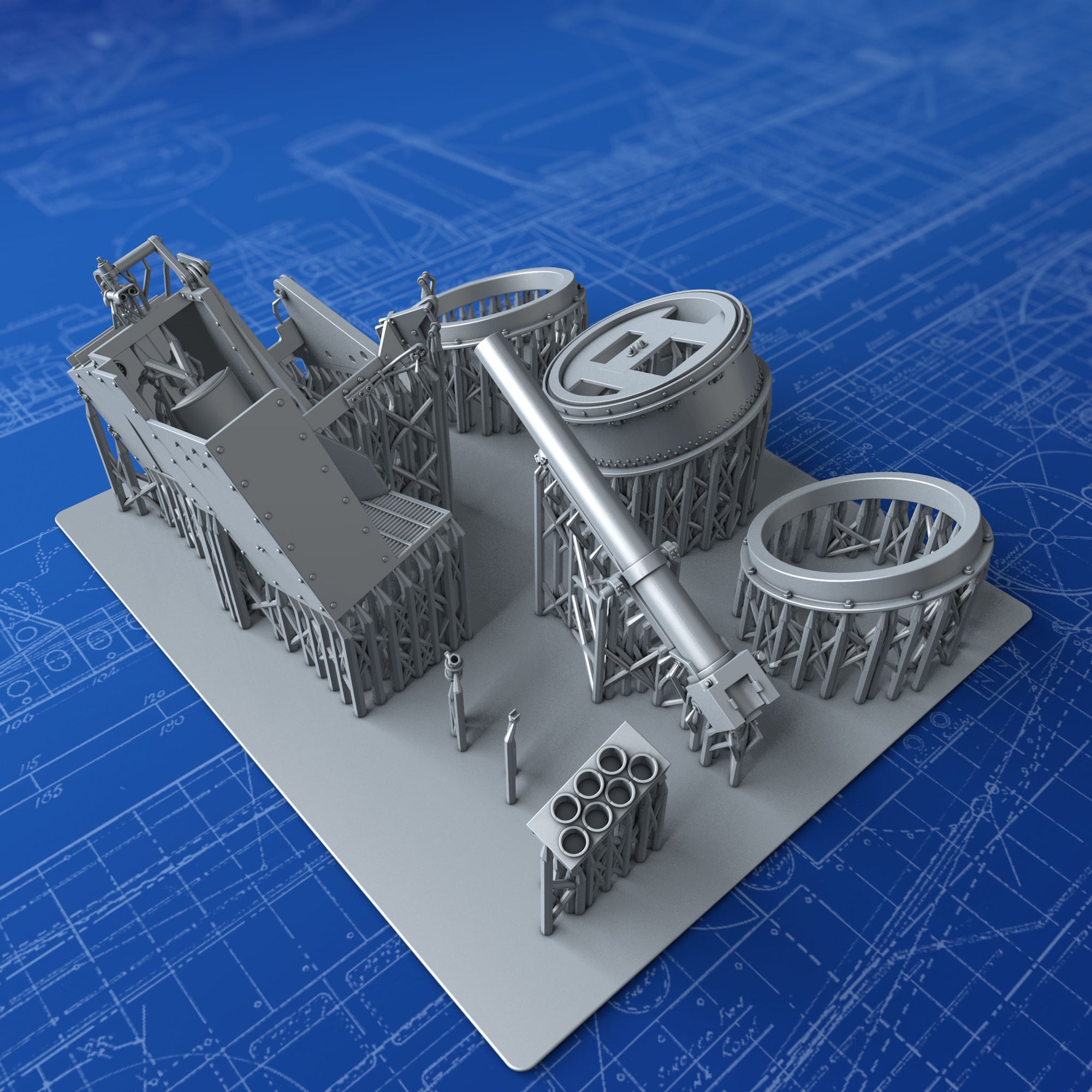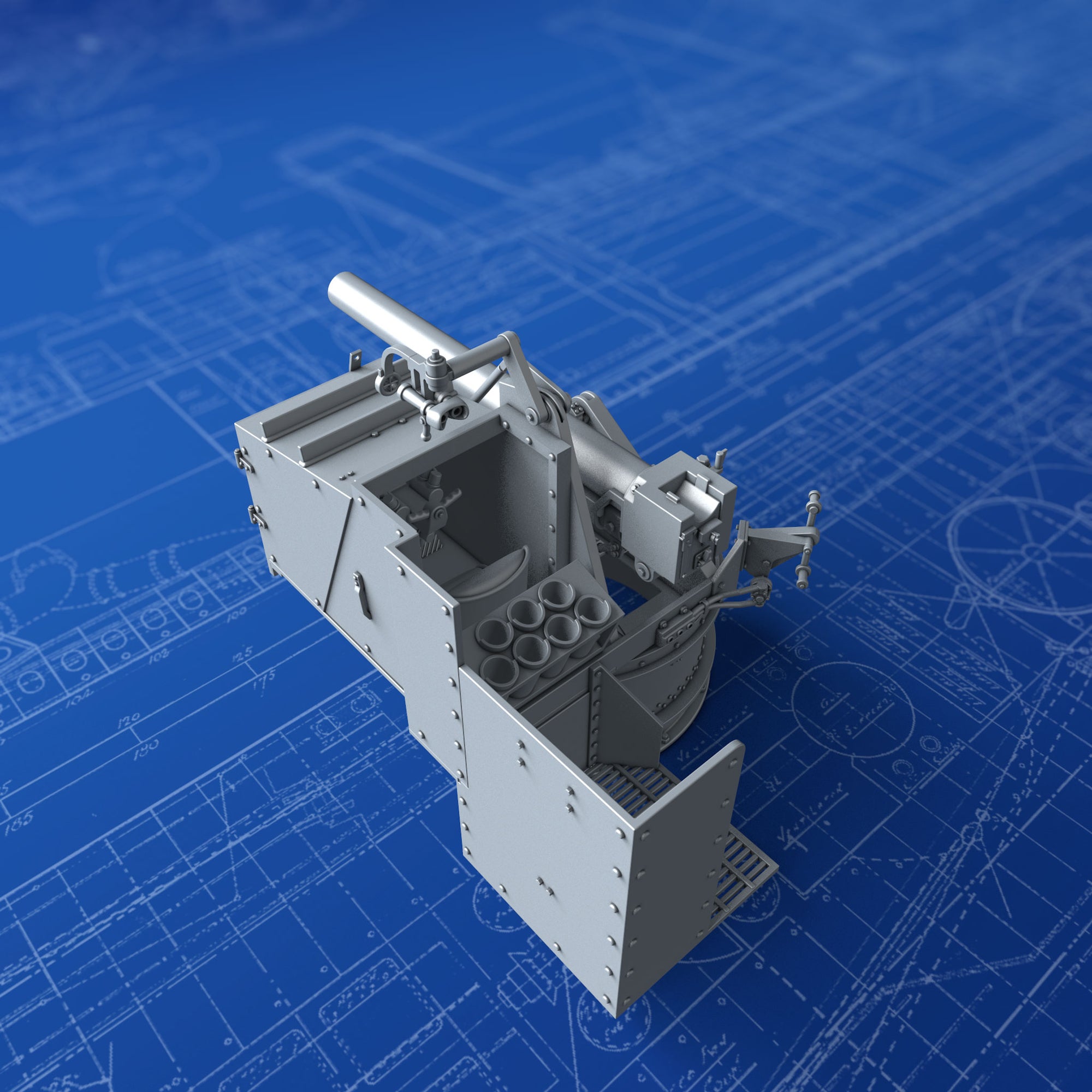- Details include: Accurate Breech Loading mechanism, Shell Storage, Operators Seat and Controls, Rivets, Hex nuts and Sighting Apparatus
